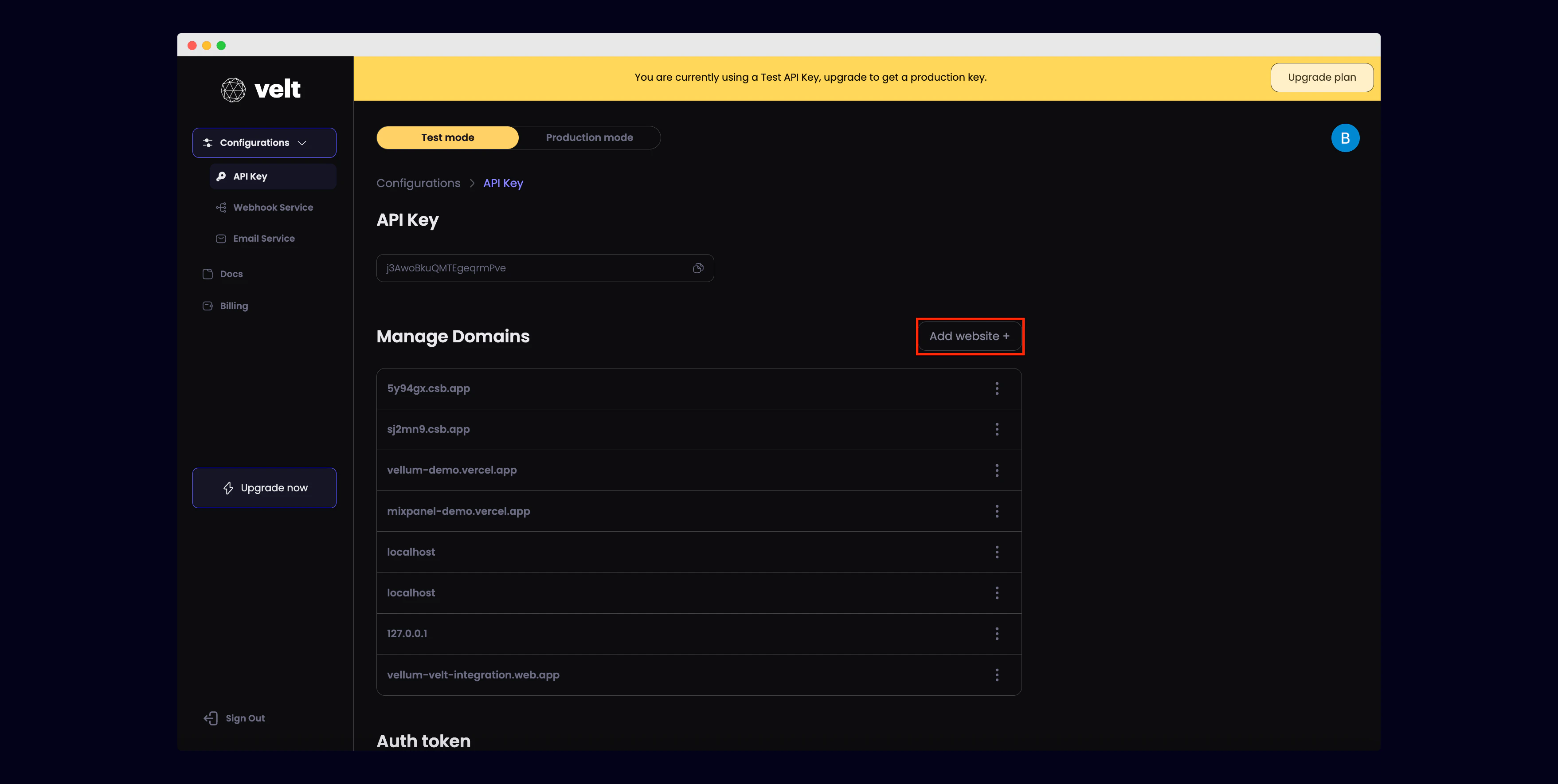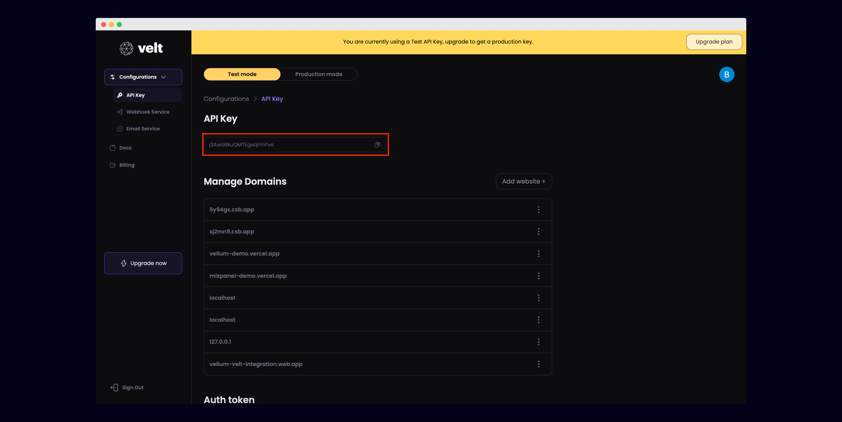 Grab your Velt API Key